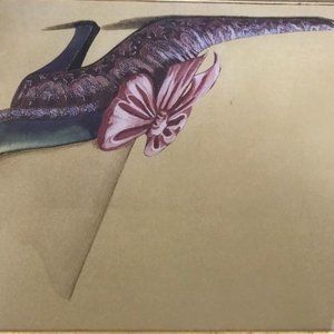 Framed Victorian Shoe With Bow Art by Fiona Saunders