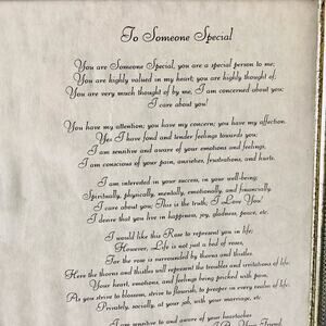 Vintage dedication poem “To Someone Special…” framed in gold tone metal frame. The frame has some patina from age. No other flaws.