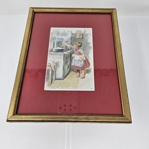 Framed Wall Art Vintage Postcard Girl Cooking Cottagecore Ready To Hang Kitchen
