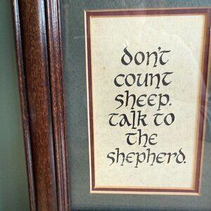 Framed Wall Art With "Dont Count Sheep Talk To The Shepherd" Text In Dark Wood F