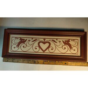 Framed Wooden Folk Art Heart Bird Wall Hanging