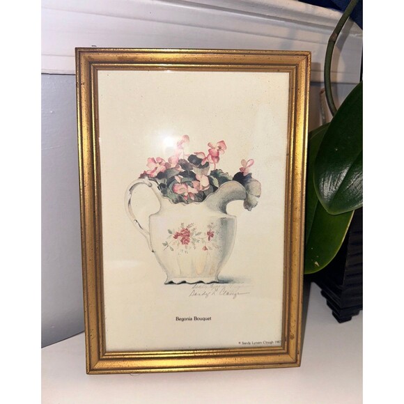 Framed and Signed Begonia Bouquet Sandy Lyman Clough Art Print