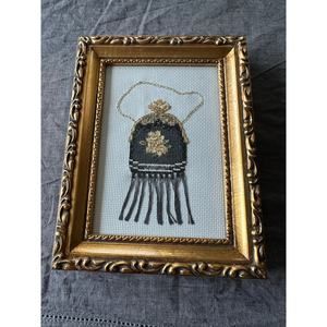 Framed needlepoint finished Counted Cross Stitch Vintage Purse Sandy Clough 6x7”