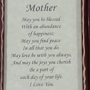 Framed poem glass pane Mother poem great for Mother's Day or any occasion