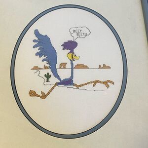 Framed Vintage Needlepoint cross stitch Road Runner BEEP BEEP Looney Tunes art