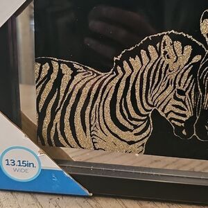 Elegant framed art featuring zebras in gold and black. Perfect for adding a touch of sophistication to any room.