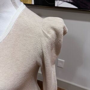 Frame cotton and cashmere sweater, oatmeal, color with white detail at neck, puff sleeve, perfect condition, size XS