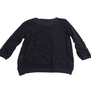 France Mode Black Mesh Studded Star Graphic Top Women Size S 3/4 Sleeve FLAW