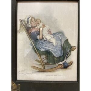 Frances Brundage Chromolithograph in Unusual Frame A Lullaby Raphael Tuck 1904