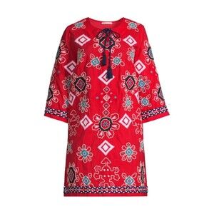 Frances Valentine Capri Embroidered Mini Tunic Dress Cotton Lace-Up XL 279873