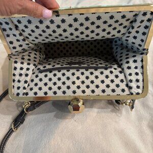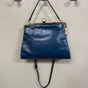 Frances Valentine Jackie Frame Bag Two Tone Navy and Oyster Leather