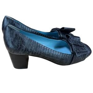 Frances Valentine NWOB Kit Block Heel Pump Dark Gray Size 6.5B Lizard Skin