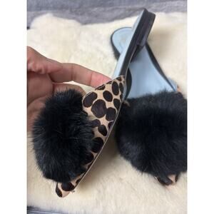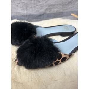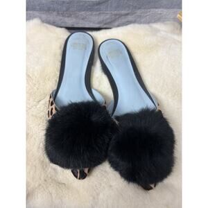Frances Valentine New York Leopard Pom Fur Sandals Shoes Size 5B