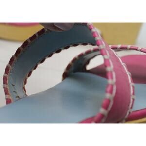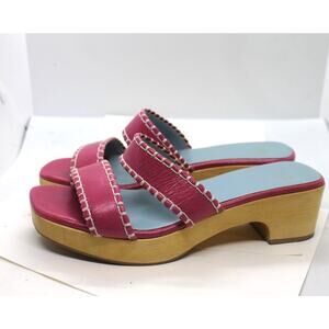 Frances Valentine Pink Whip Stitch Wooden Clog Sandals sz 7.5 US