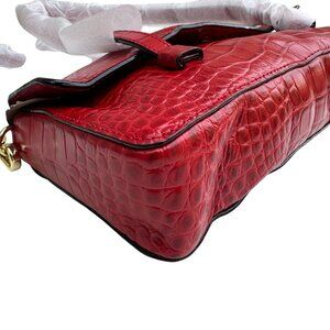 Frances Valentine Red Croc-Embossed Leather Shoulder Bag Long Strap Snap Closure
