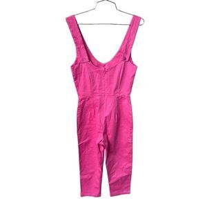 The cotton-stretch jumpsuit has adjustable straps and is detailed by 4 front buttons enclosing the open-front and colorful solid lining. Effortlessly elegant, style up this piece with sandals for any summer occasion.