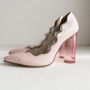 Francesca Bellavita Pink Glitter Scalloped Edge High Heels 38.