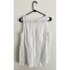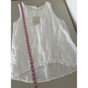 Francesca Bettini 100% Linen Blouse Women Size S White Sleeveless Frayed Hem Top
