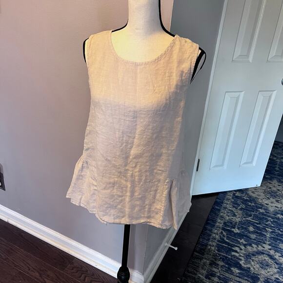 Francesca Bettini 100% Linen Top Size S Tank Peplum Ruffle Sleeveless