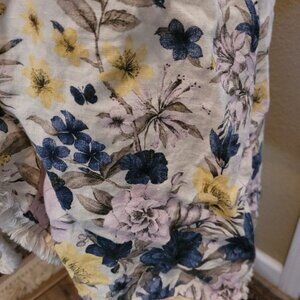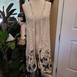 Francesca Bettini Duster Top 100% Linen Crew Floral Flowers Small Medium