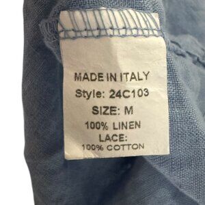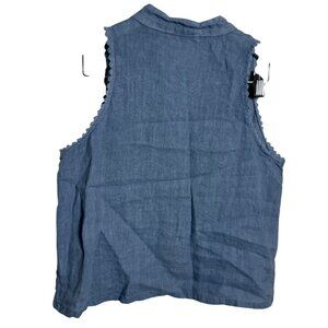 Francesca Bettini Italy 100% Linen Blue Sleeveless Button Front Blouse sz Medium