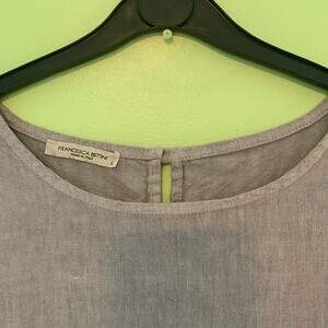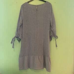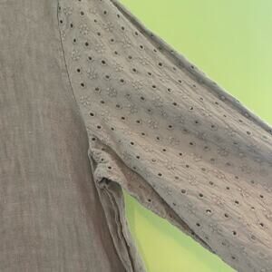 Francesca Bettini Linen Eyelet Lace Drop Waist Tie Sleeve Gray Dress Size Large