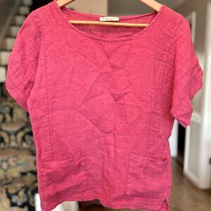 Francesca Bettini Linen Short Sleeve Lightweight Breezy Blouse Cranberry Size S