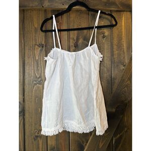 Francesca Bettini Linen Tank Top Spaghetti Strap Tassel Design Sz L White