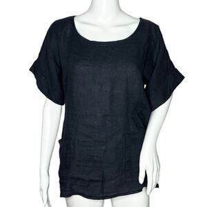 Francesca Bettini Shirt Womens Medium Navy Blue Linen Lightweight Patch Pockets
