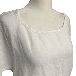 This beautiful, 100% linen top has pulled over styling, short sleeves, and two front pockets at the hip. It is designed to be oversized and boxy for a very roomie fit. Made in Italy. 100% linen