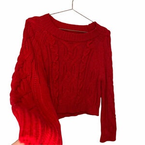 Francesca Harper Heritage Red Cable Knit Sweater Cropped Sweater Medium