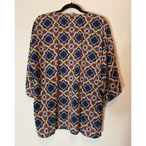 Francesca Multicolored Geometric Pattern Open Kimono Cardigan Small