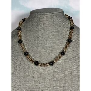 Francesca Visconti Gold Tone Black Acrylic Beads Link Necklace 20”