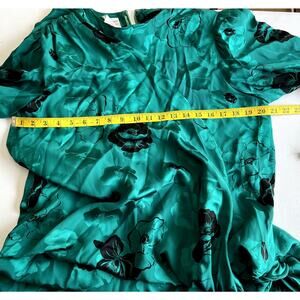 Francesca of Damon for Starington Mini Dress Women Size 12 Green Floral Silk Long Sleeve Party Event Holiday Glam Vintage VTG 70s 80s 90s Classy Classic SOFT Pleated Drop Waist Side Tie Knot Back Zip Closure Knee Length