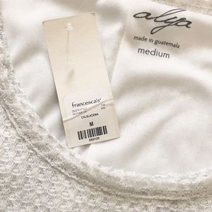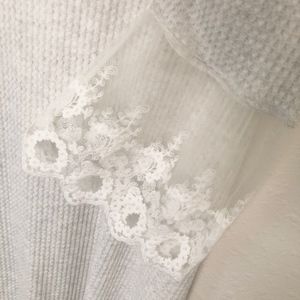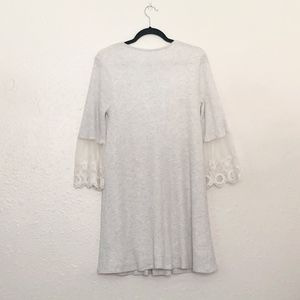 Brand new with tags. Francescas Alya Cream/Heather Oatmeal Knit Boho Dress with lace sleeves. Super Soft. Fully lined. Size MEDIUM.