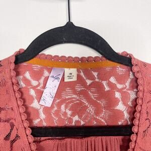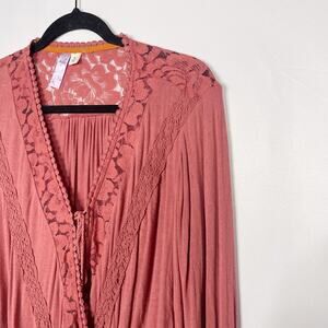 Francescas Alya Pink Mauve Medium M Lace Long Sleeve Wrap Top Blouse Jersey