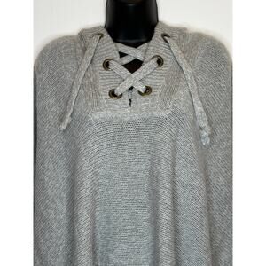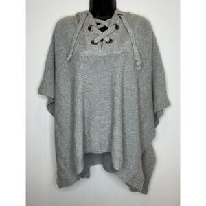 Francesca's Alya Poncho Sweater Hoodie Gray Lace Up front size SM/Med