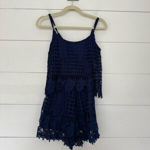 Francesca’s Alya Women’s Small Blue Crochet Romper