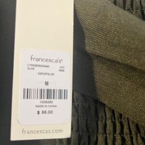 Francesca's Audrey Parks Linen Blend Puff Sleeve Jumpsuit Olive Green Size M