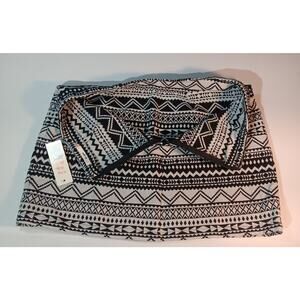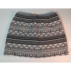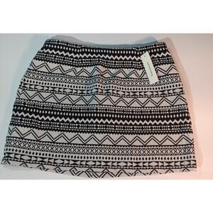 Francesca’s Aztec Print Knit Mini Skirt Black White Geometric Tribal Size M
