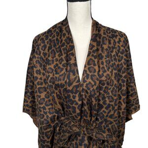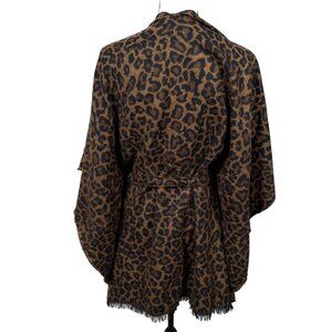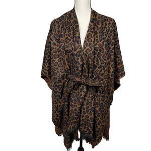 Francesca's Belted Wrap Poncho Ruana One Size Leopard Animal Print Fringe Knit