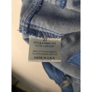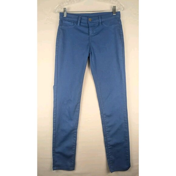 Francesca's Birdcage Pants in turquoise blue for women, size 27. Skinny stretch style, solid pattern, USA made. Crafted from comfortable cotton material.