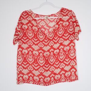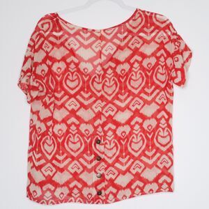 Francesca's Birdcage Womens Sheer Blouse Size Small Red Tribal Print Boho Hippie