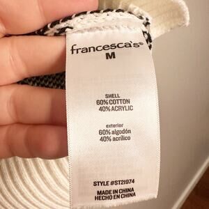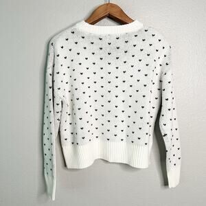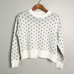 Francesca’s mini black bow pattern white cropped pull over sweater. Size medium. New with tags.
