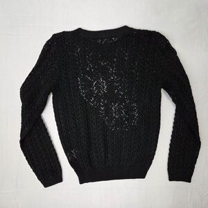 Francesca's Black Daisy Knit Sweater Size S Crew Neck Boutique Open Knit NEW