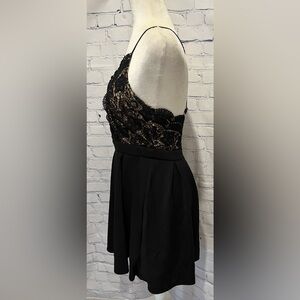 Francesca’s Black Lace Strappy Back Fit & Flare Skater Dress size small