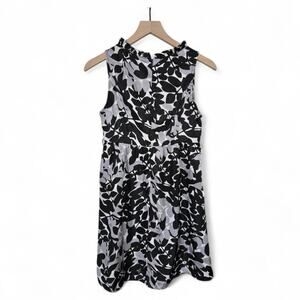 Francesca’s Black White Floral Sleeveless Ruffle Neck Dress Size Small