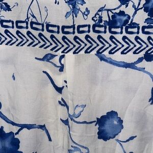 Chic sleeveless top with blue floral patterns. Lightweight and stylish.