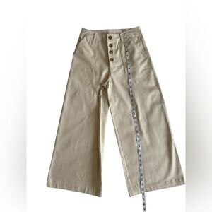 Francesca’s Blue Papaya Beige Wide Leg Crop Pant Button Front High Rise Sz S NWT