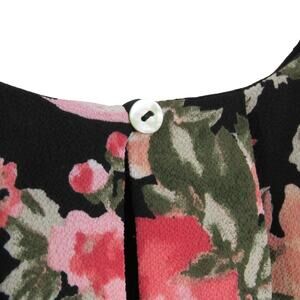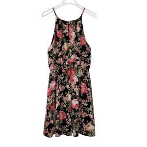 Francesca's Blue Rain Black and Pink Floral Mini Dress High Neck A-Line Medium